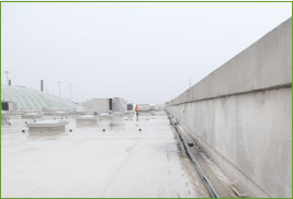 在外露工程機械固定法施工時,根據經驗,非加強型的材料在負風壓力作用下,出現反復拉伸,導致累積塑性變形,出現卷材斷裂、固定點劈裂、收頭脫落等破壞。凱倫公司凱倫PVC防水卷材織物內增強型提高了抗拉力、撕裂強度及耐穿刺性等性能,從而進一步提高了對機械固定工法的適用性,加上完整的配套材料,使該系統特別適合用于單層屋面工程。
