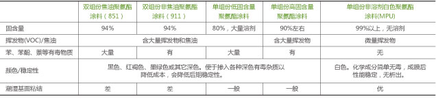 凱倫單組份聚氨酯防水涂料是聚氨酯防水涂料的終極版本,其操作性能和成膜后的物理性能大大優于聚合物水泥涂料和普通瀝青涂料。但囿于其自身所含的溶劑和其它有毒雜質,各色聚氨酯涂料在此前三十年的應用受到不同程度的質疑和限制。