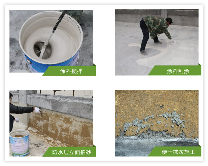 ● 涂料立面施工時,為確保防水層與后續抹灰粘結牢靠,在防水層最后一道涂層實干前(一般為12h以內),采取在防水層表面